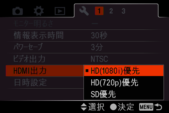 HDMIの設定は、1080i優先、720p優先、SD優先